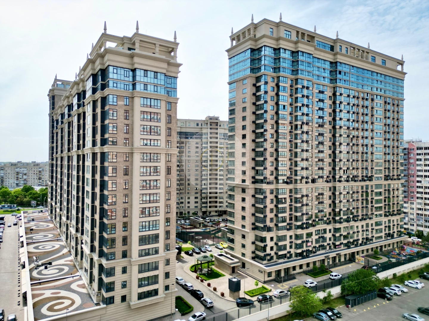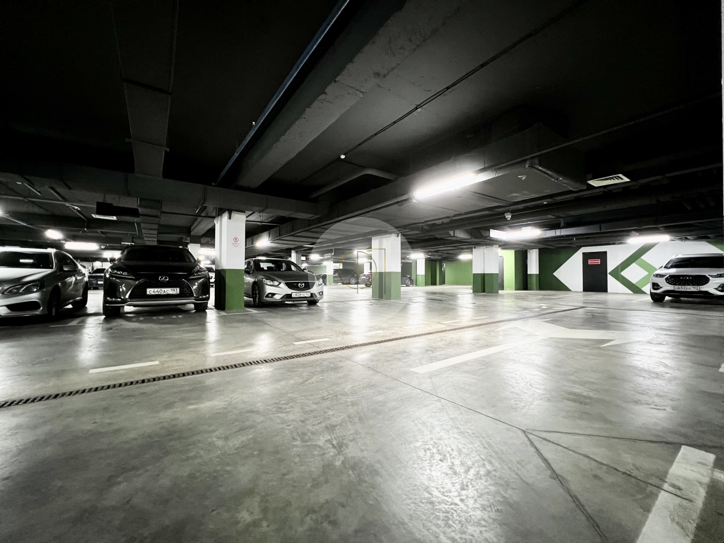 Закрытая территория комплекса. Подземный паркинг с возможностью спуска на лифте. Квартира расположена на 19 этаже. Планировка: общ. S=47,15 кв.м, 1 изолированная комната и кухня-гостиная, с/у, просторная витражная лоджия. Высота потолков 2,80 м. Состояние квартиры - предчистовая отделка от застройщика.