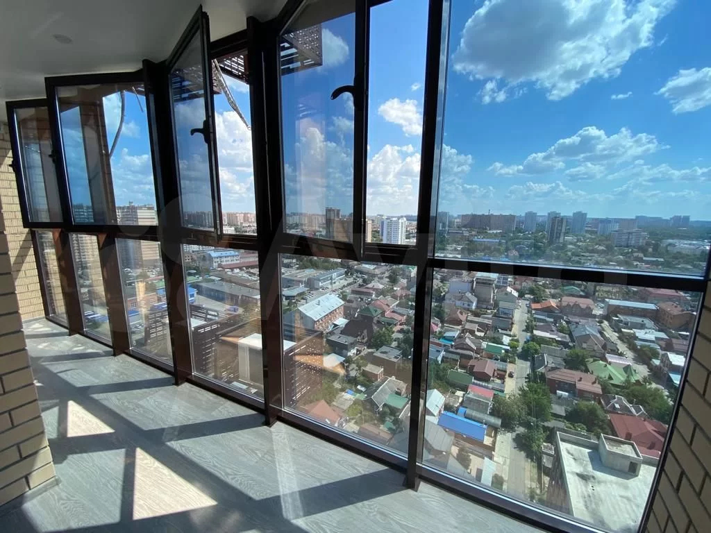 Один из плюсов - это шикарная видовая лоджия с которой открывается вид на весь город. Выход на лоджию из спальни и кухни.
