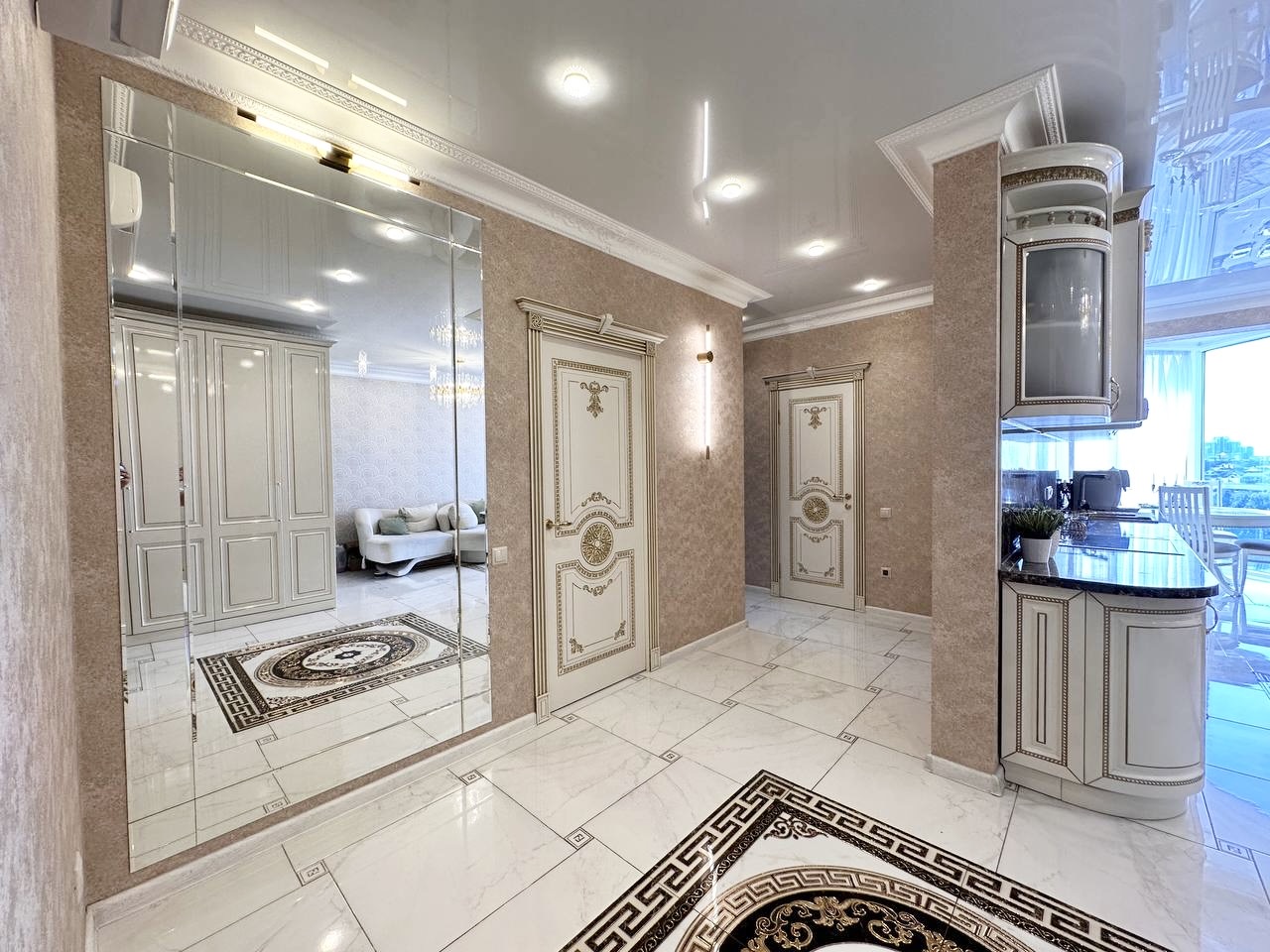 Закрытая территория комплекса. Подземный паркинг с возможностью спуска на лифте. Квартира расположена на 8 этаже. Планировка: общ. S= 75 кв. м, 2 изолированные комнаты и кухня-гостиная, с/у совмещен , просторная витражная лоджия. Высота потолков 2,80 м. Состояние квартиры - дизайнерский ремонт.