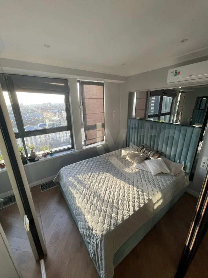 Квартира расположена на 14 этаже. Из окон открываются потрясающие виды на историческую часть города. Планировка: общ. S=60 кв.м, 2 изолированные комнаты и кухня-гостиная, с/у. Высота потолков 2,85 м. Состояние квартиры -шикарный вид с 14 этажа открывается из окна спальни на улицу Калинина, Тургеневский мост и реку Кубань. Из детской комнаты вид во двор. 2 оснащённых гардеробных комнаты, шкаф-купе во входной зоне, постирочная комната, совмещённый санузел. Дизайнер проекта Элеонора Полупанова. Квартира отделана дорогостоящими материалами. В ванной комнате плитка из Бомонда, а сантехника из Квадрата, тёплый пол. Плитка на кухонном фартуке ручной формовки. Плинтуса из мдф, все двери, в том числе и входная «Софья». Невероятно красивый ламинат, фактурность которого видна при прямом попадании солнечного света. Отопление осуществляется стильными напольными конвекторами. Техника : варочная поверхность Мidеа, духовой шкаф Мidеа, вытяжка Мidеа, посудомоечная машина smеg, встроенный холодильник gоrеnjе, две сплит-системы, бойлер.