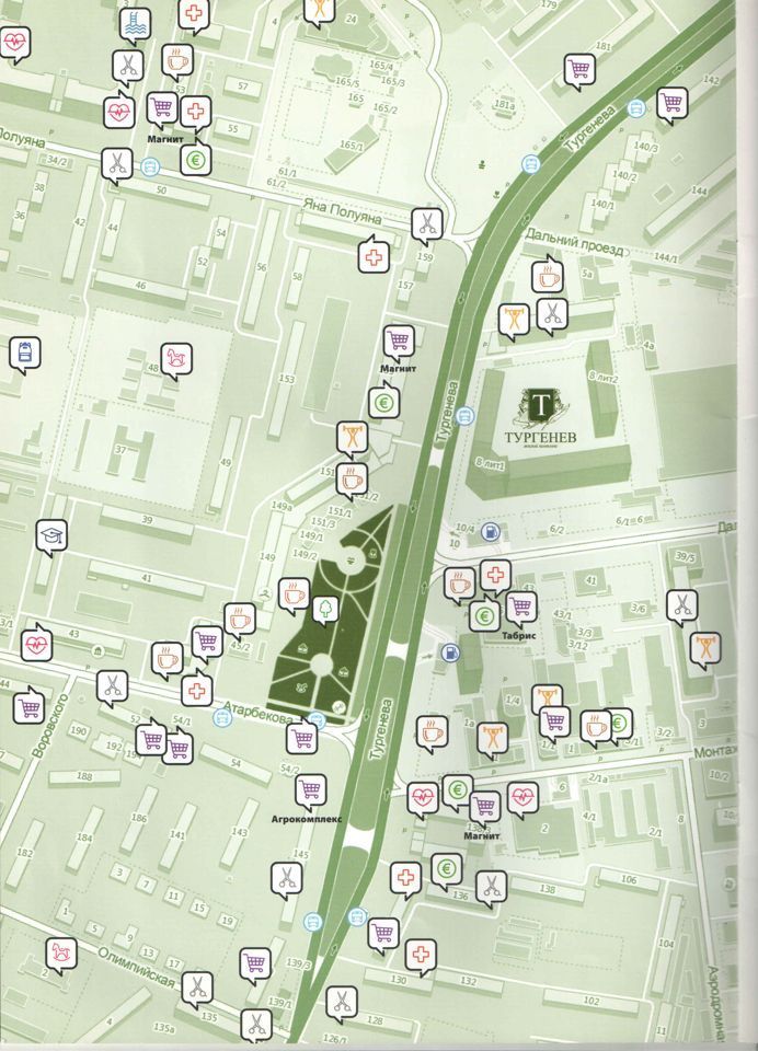 В шаговой доступности школы 42, 80, 5, 29. Лицей 64. Гимназия 18, 72, 33, 23, 54. и детские сады 228, 202, 130 и др., Фестивальный сквер, Дальний бульвар, а также рядом находятся улицы Монтажников, Тургенева, ЖК Маршал ул. Гаражная, Рашпилевская, Стахановская, ЖК Двор с кораблём на ул. Яна Полуяна, до ЖК Седьмой Континент на улице Совхозная 3 минуты на авто.