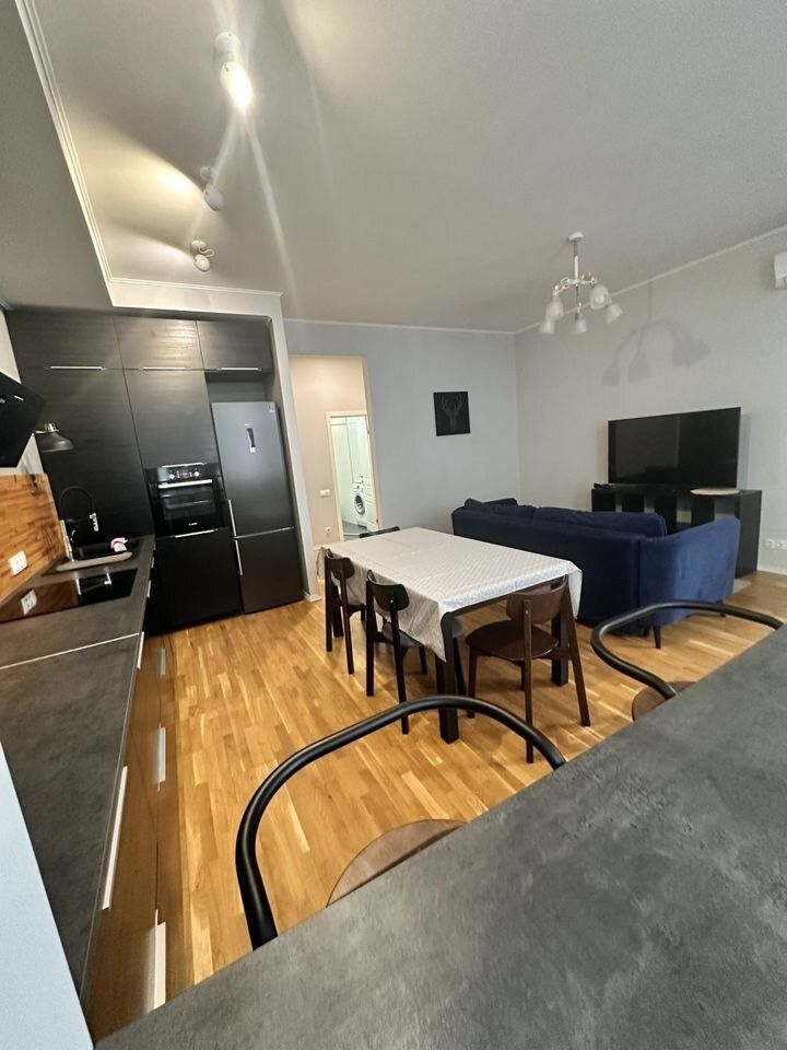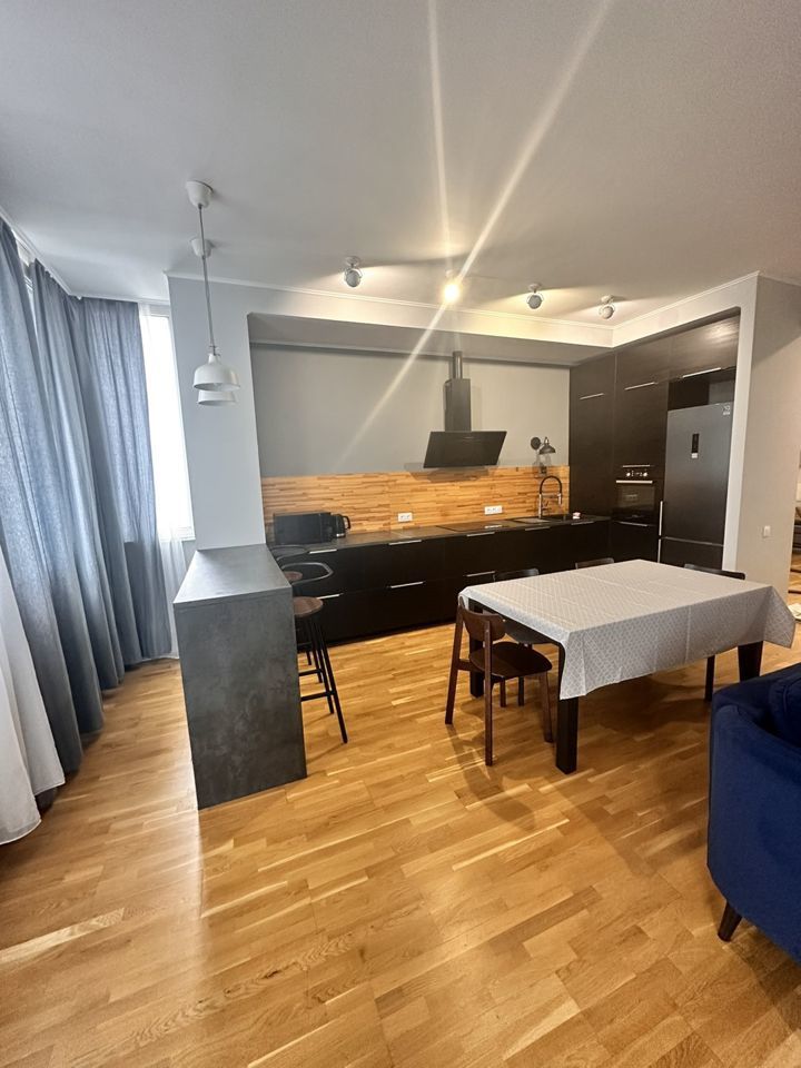 Закрытая территория комплекса. Квартира расположена на 11 этаже. Планировка: общ. S=78 кв.м, 1 изолированная комната и кухня-гостиная, с/у, просторная витражная лоджия. Высота потолков 2,90 м. Состояние квартиры - хороший ремонт.