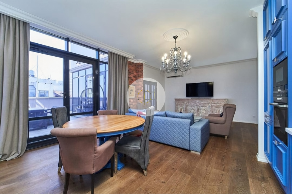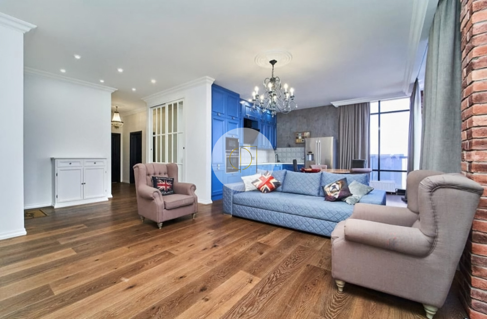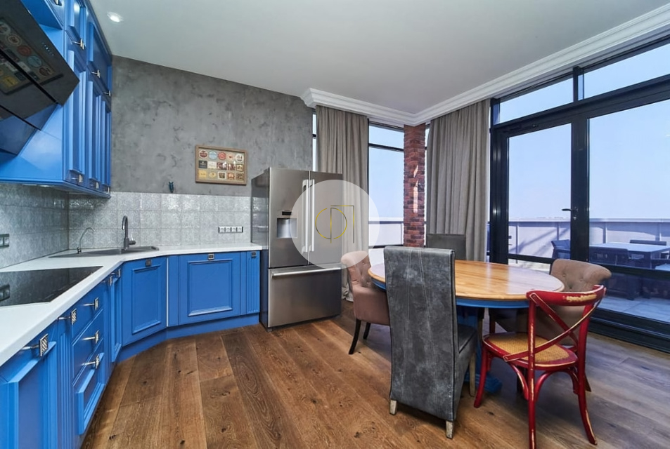 Квартира расположена на 18 этаже. Планировка: общ. S= 114 кв.м, 3 изолированные комнаты и огромная кухня-гостиная 42кв.м,с/у, открытая терраса .Витражные окна. Высота потолков 3м. Состояние квартиры - качественный дизайнерский ремонт. Вся техника и мебель остаётся.