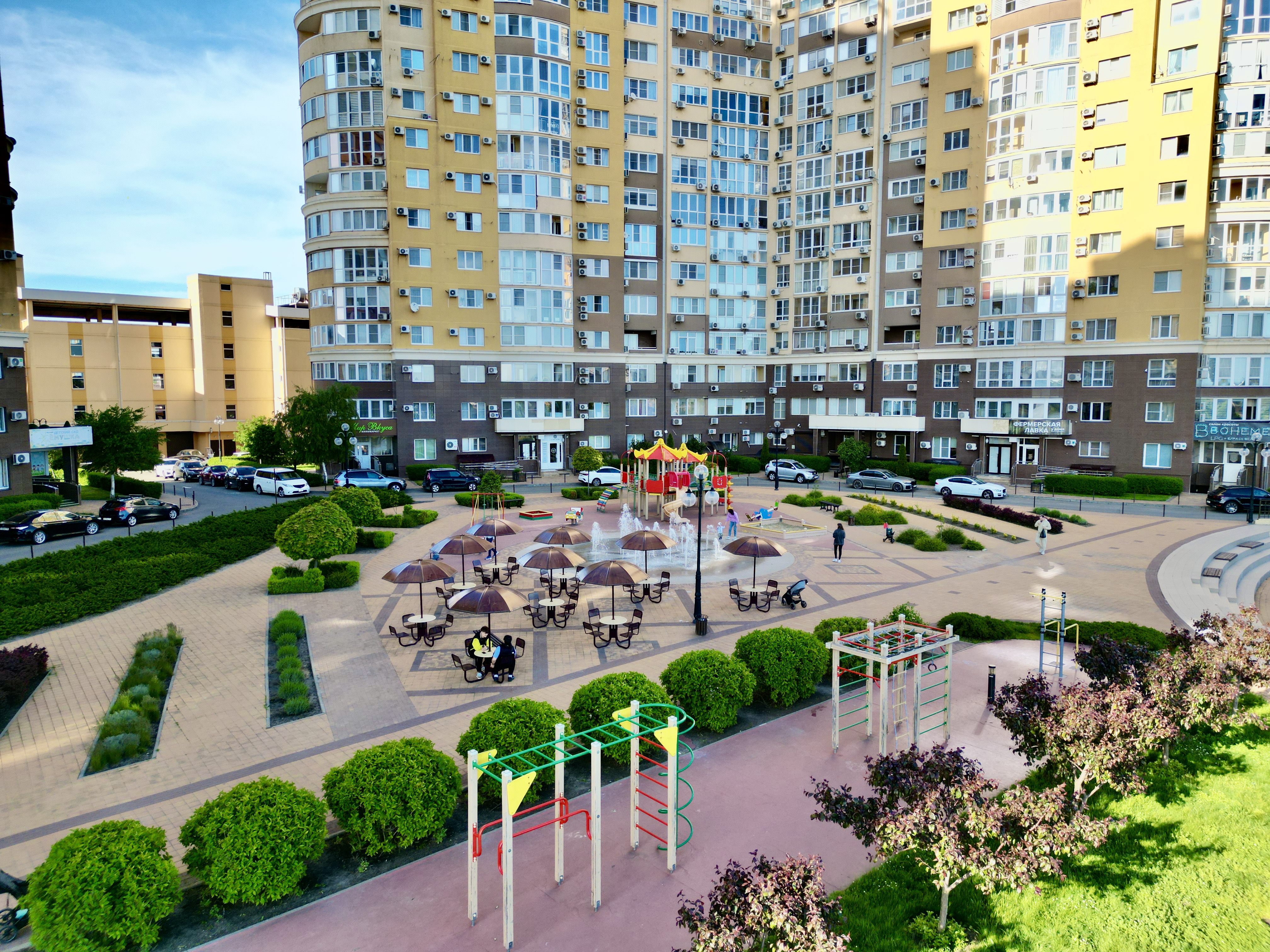 Развитая инфраструктура: кафе, рестораны, фитнес клубы, торговые центры, лучшие клиники в городе, супермаркеты, магазины, аптеки, прогулочные зоны, двор, оборудованный детскими площадками, подземный и наземный паркинги, консьерж и охрана, камеры видеонаблюдения.