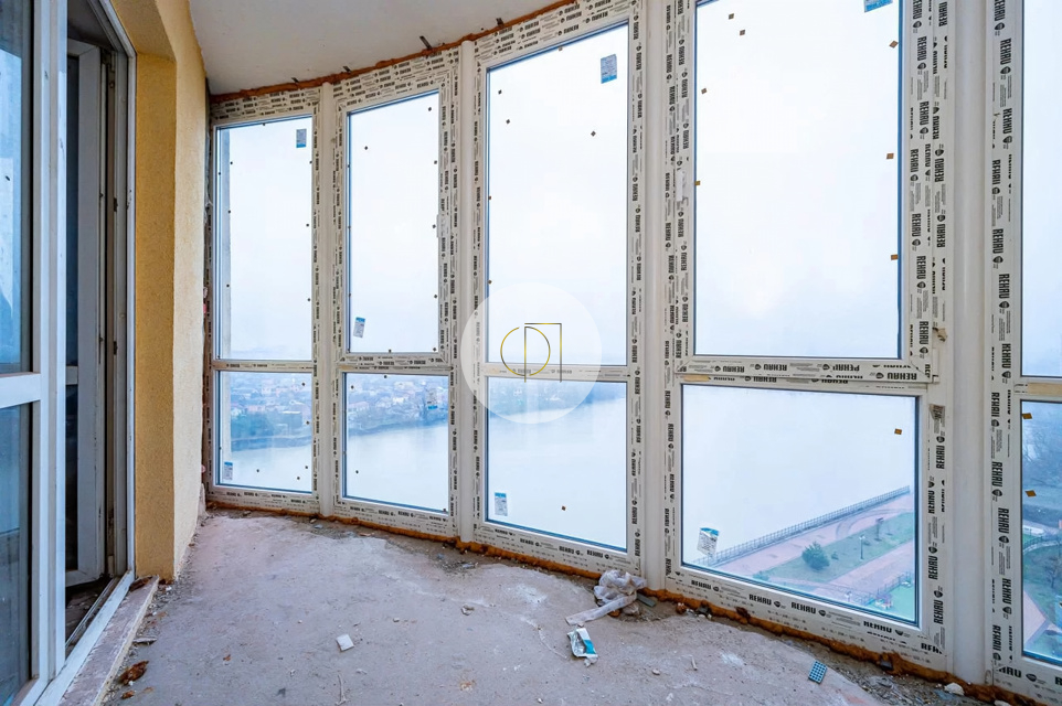 Есть возможность сделать полноценную мастер-спальню. Все окна квартиры выходят на реку и горы.