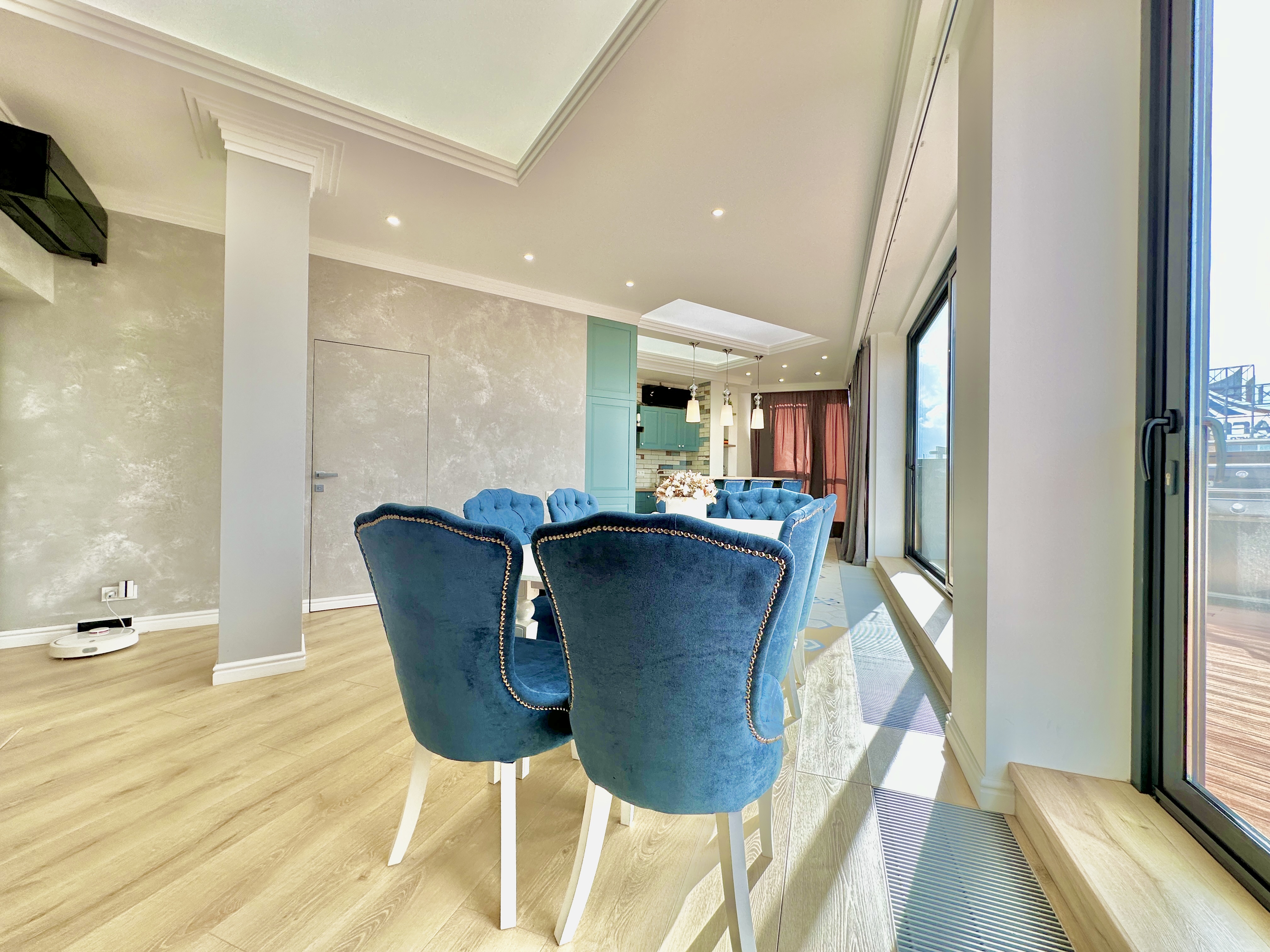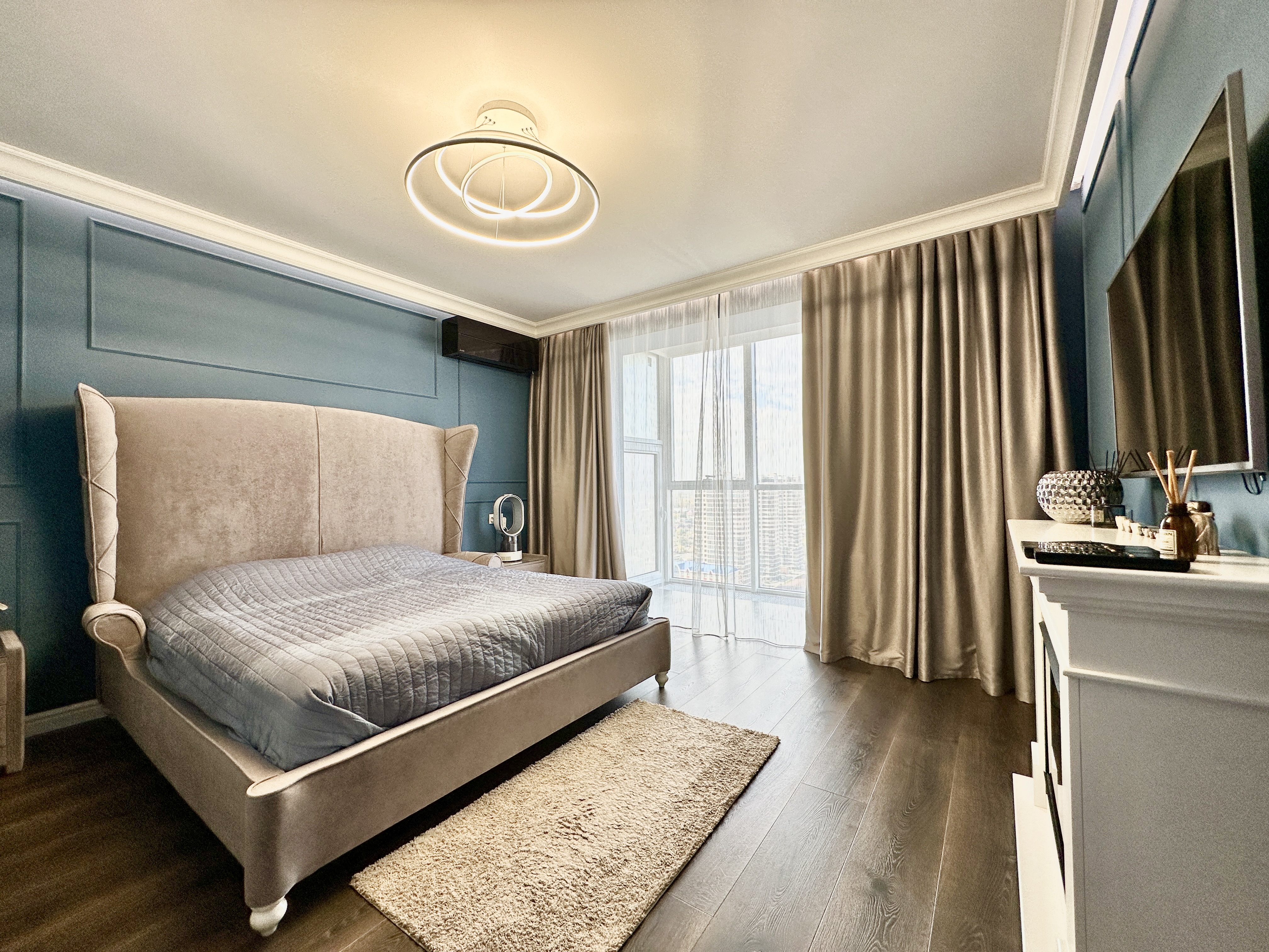 Закрытая территория комплекса. Подземный паркинг с возможностью спуска на лифте. Квартира расположена на 24-25 этаже. Планировка: общ. S= 270 кв. м, 4 изолированная комнаты и кухня-гостиная 86 кв.м., 3 с/у, просторные витражные лоджии и терраса. Высота потолков 2,80 м. Состояние квартиры: выполнен дорогой, качественный ремонт, заменены все стеклопакеты от застройщика, мебель и сантехника дорогих и качественных производителей, в квартире остаётся вся техника, мебель и текстиль.