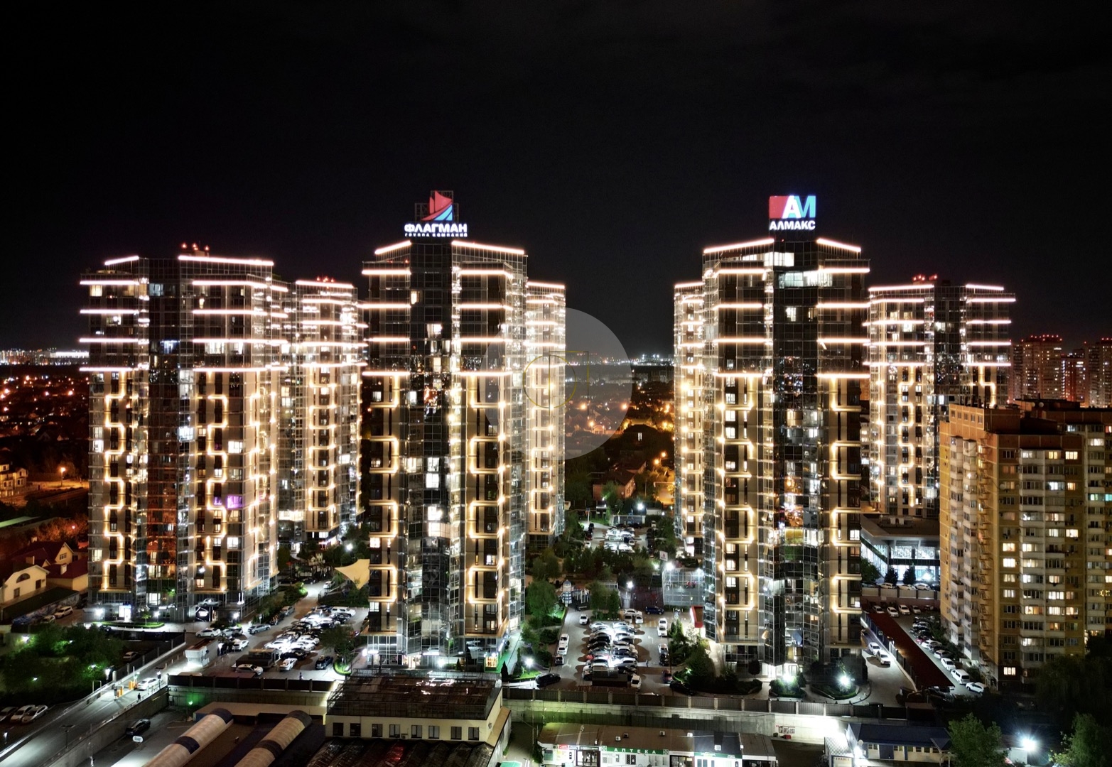 Закрытая территория комплекса. Подземный паркинг с возможностью спуска на лифте. Квартира расположена на 24 этаже. Планировка: общ. S=180 кв. м, 1 изолированная комната и кухня-гостиная,2 с/у, просторная витражная лоджия. Высота потолков 2,80 м. Состояние квартиры - предчистовая отделка от застройщика.