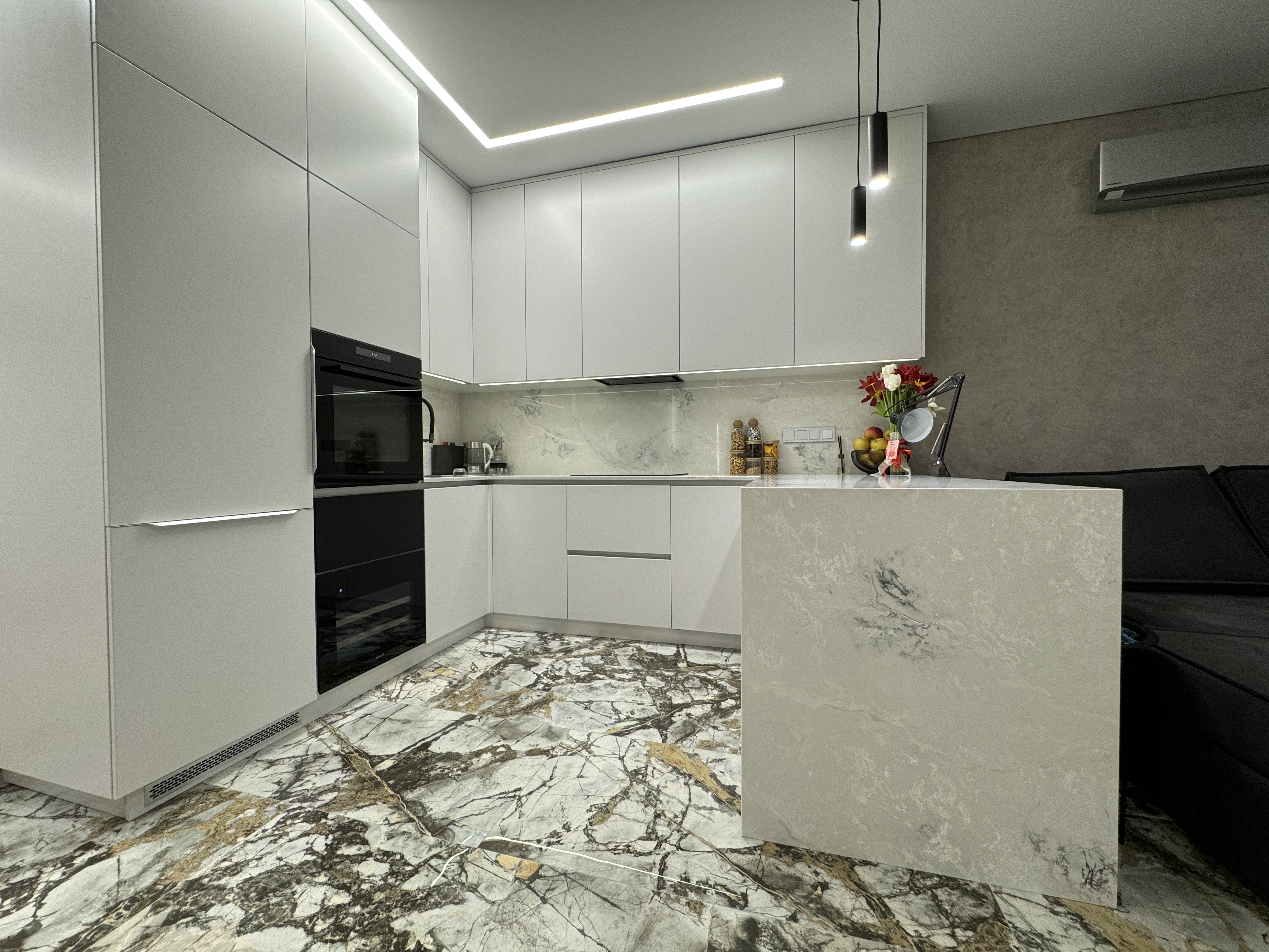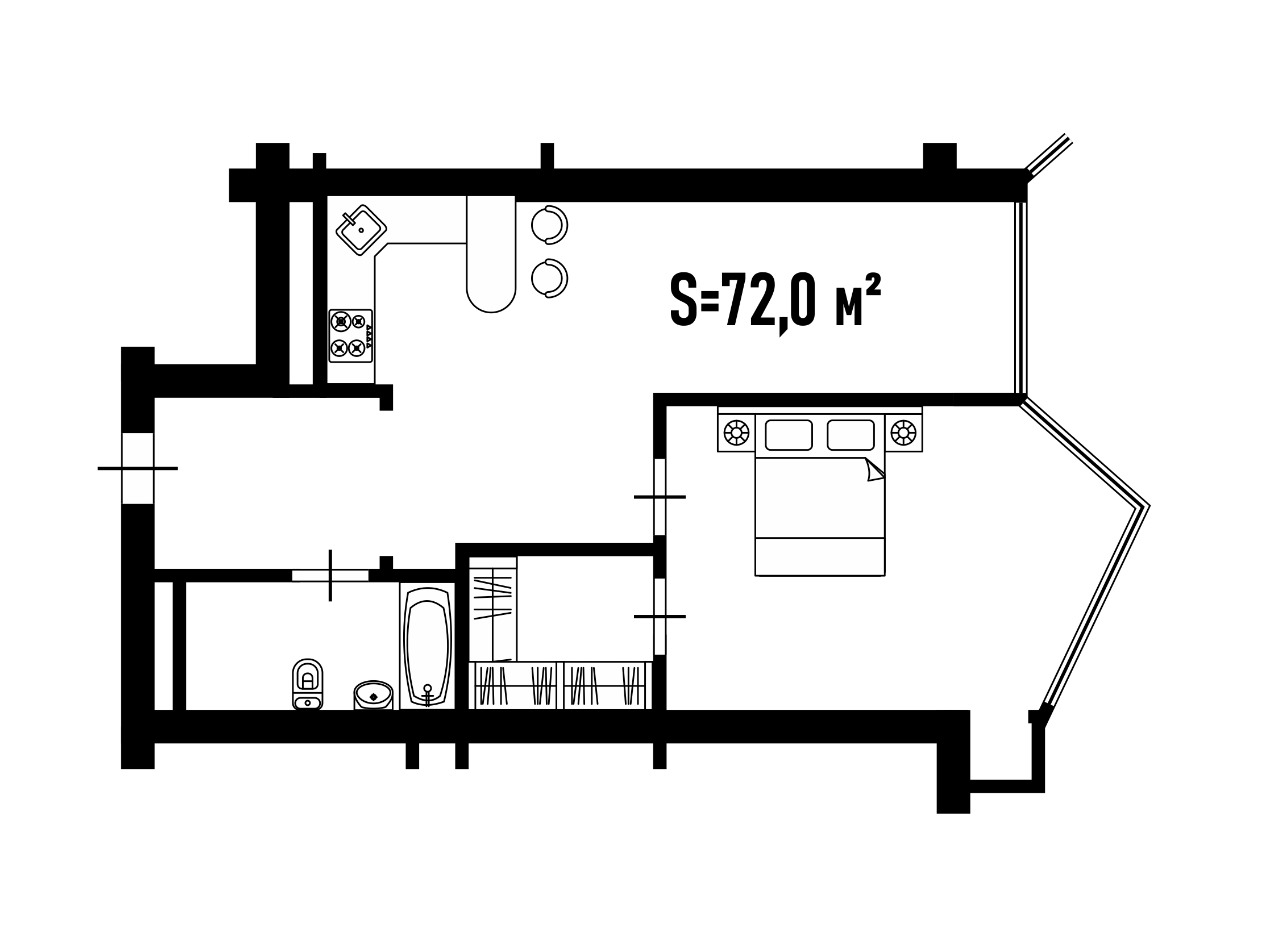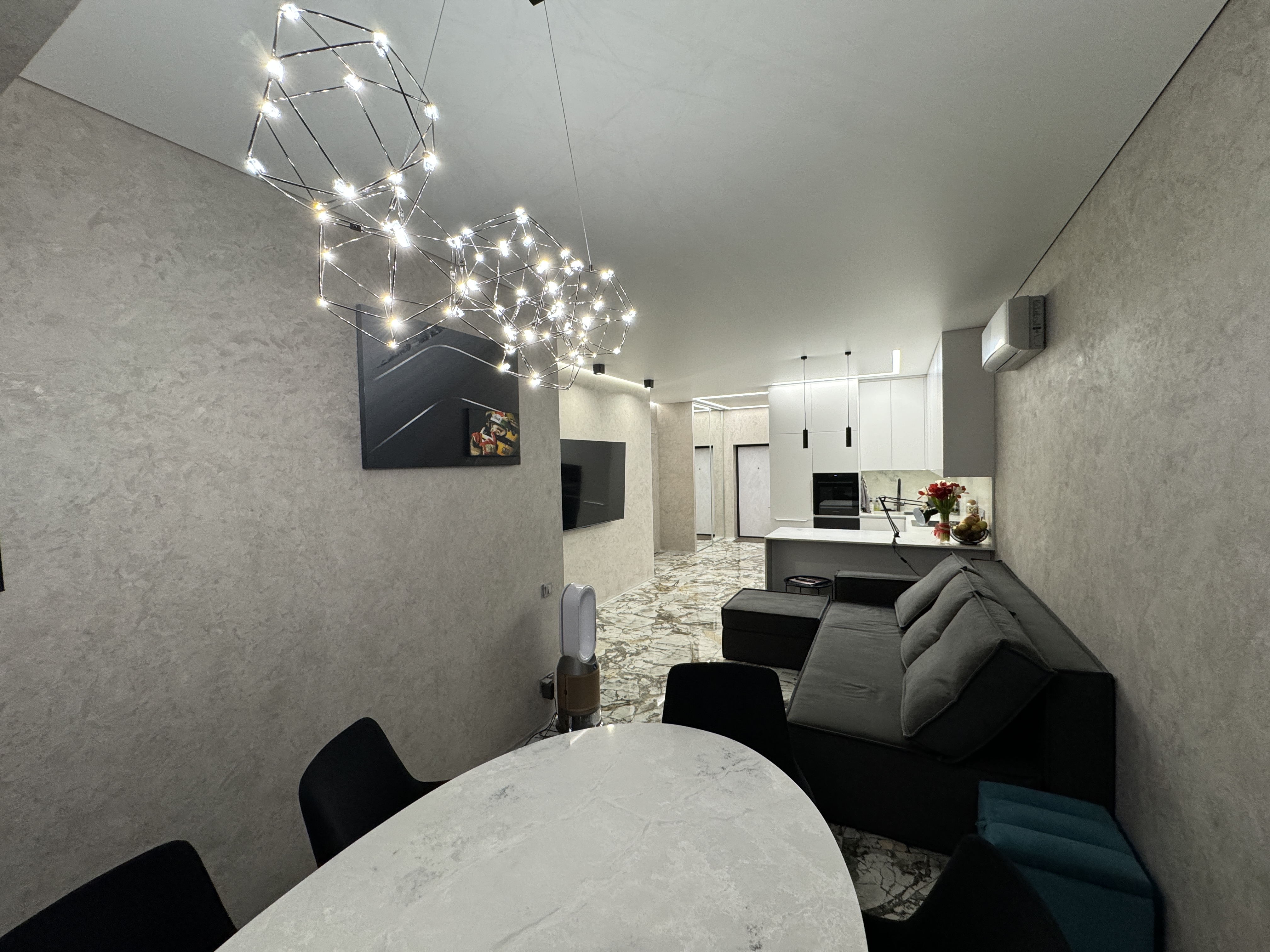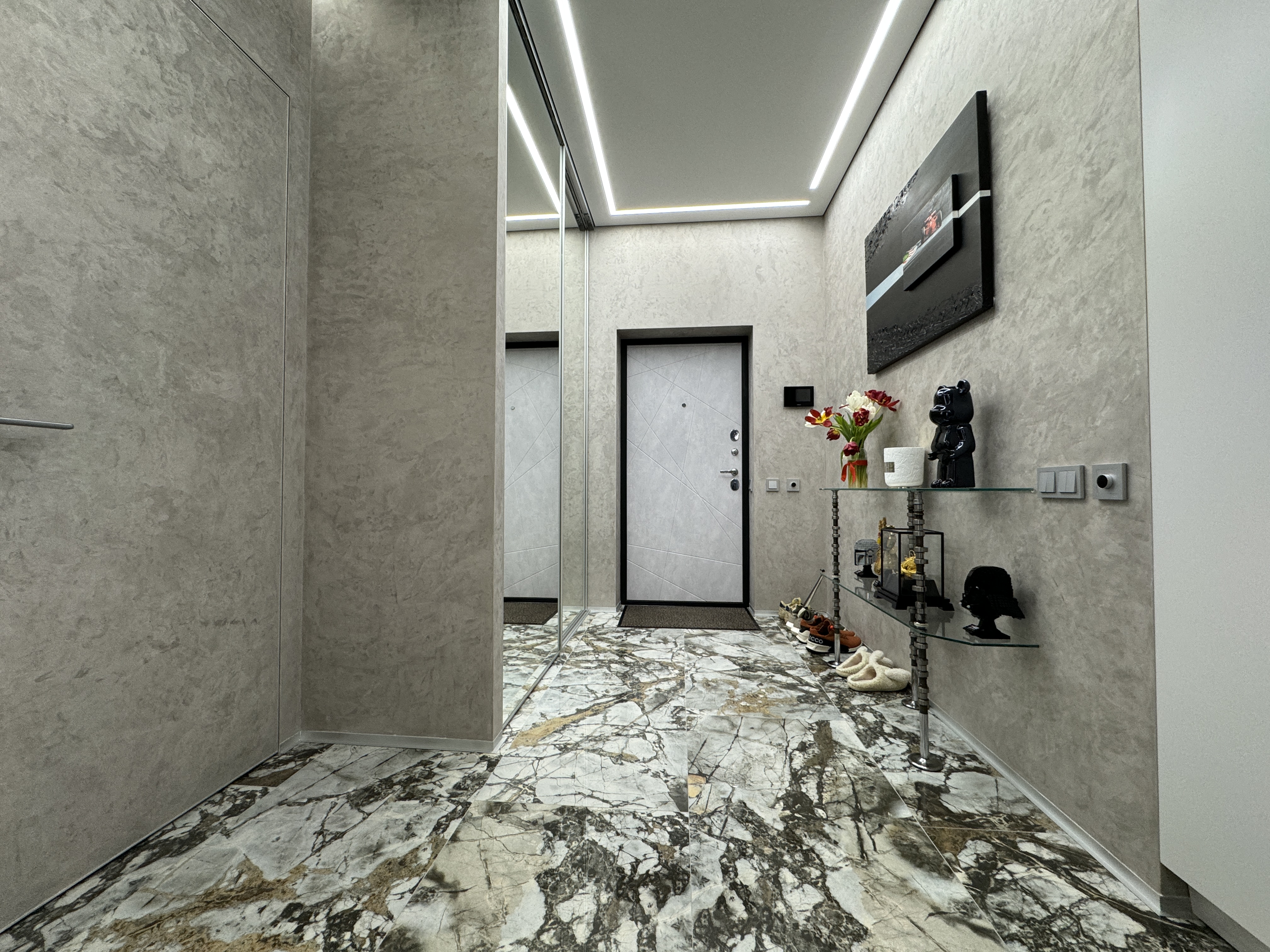 Планировка: общ. S=72 кв. м, 1 изолированная комната и кухня-гостиная, с/у, оборудованная гардеробная комната. Высота потолков 2,90 м. Состояние квартиры - выполнен дорогой качественный ремон с использование самых качественных материалов. В стоимость квартиры входит вся мебель, техника, текстиль и предметы интерьера.