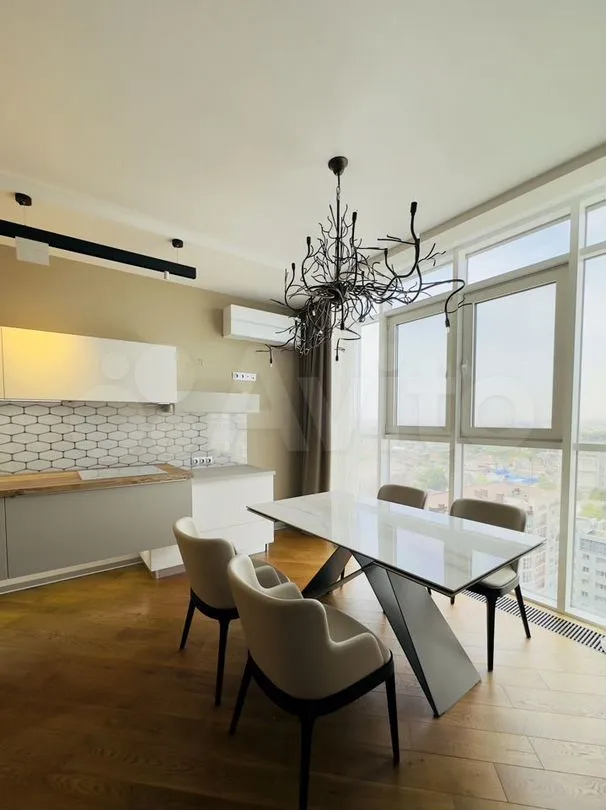 Квартира расположена на 19 этаже. Из окон открываются потрясающие виды на историческую часть города и реку Кубань. Планировка: общ. S=112 кв. м, 3 изолированные комнаты и кухня-гостиная, 2 с/у, просторная витражная лоджия. Высота потолков 3 м. Состояние квартиры - квартира с дорогим качественным ремонтом.