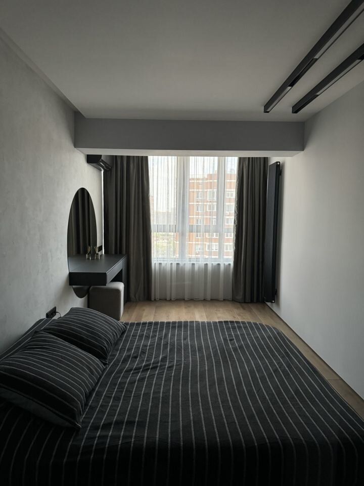 Закрытая территория комплекса. Подземный паркинг с возможностью спуска на лифте. Квартира расположена на 18 этаже. Планировка: общ. S=73,7 кв.м, 1 изолированная комната и кухня-гостиная, с/у, просторная витражная лоджия. Высота потолков 2,80 м. Состояние квартиры - дизайнерский ремонт, в стиле современный минимализм. Кухня гостиная, просторная ванная комната, спальня с гардеробом. Полностью с мебелью, техникой (большой раскладной диван, кровать Askona Ergomotion, техника Siemens (премиальная линейка), телевизор LG Oled, межкомнатные двери и перегородки Sofia, сантехника и радиоторы европейского производства, бесшумные инверторные сплит системы Haier, освещение во всей квартире от фирмы SWG) В квартире сделана дополнительная шумоизоляция.