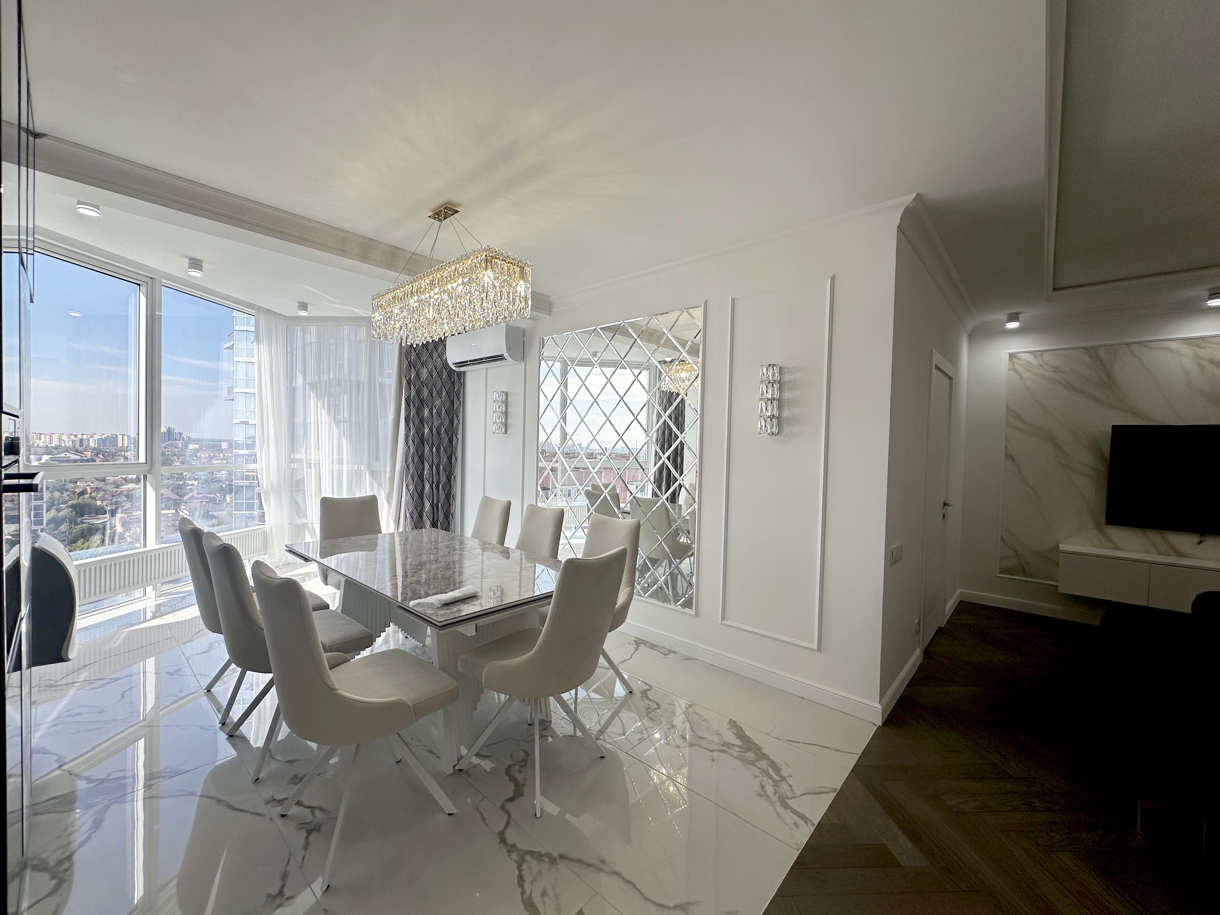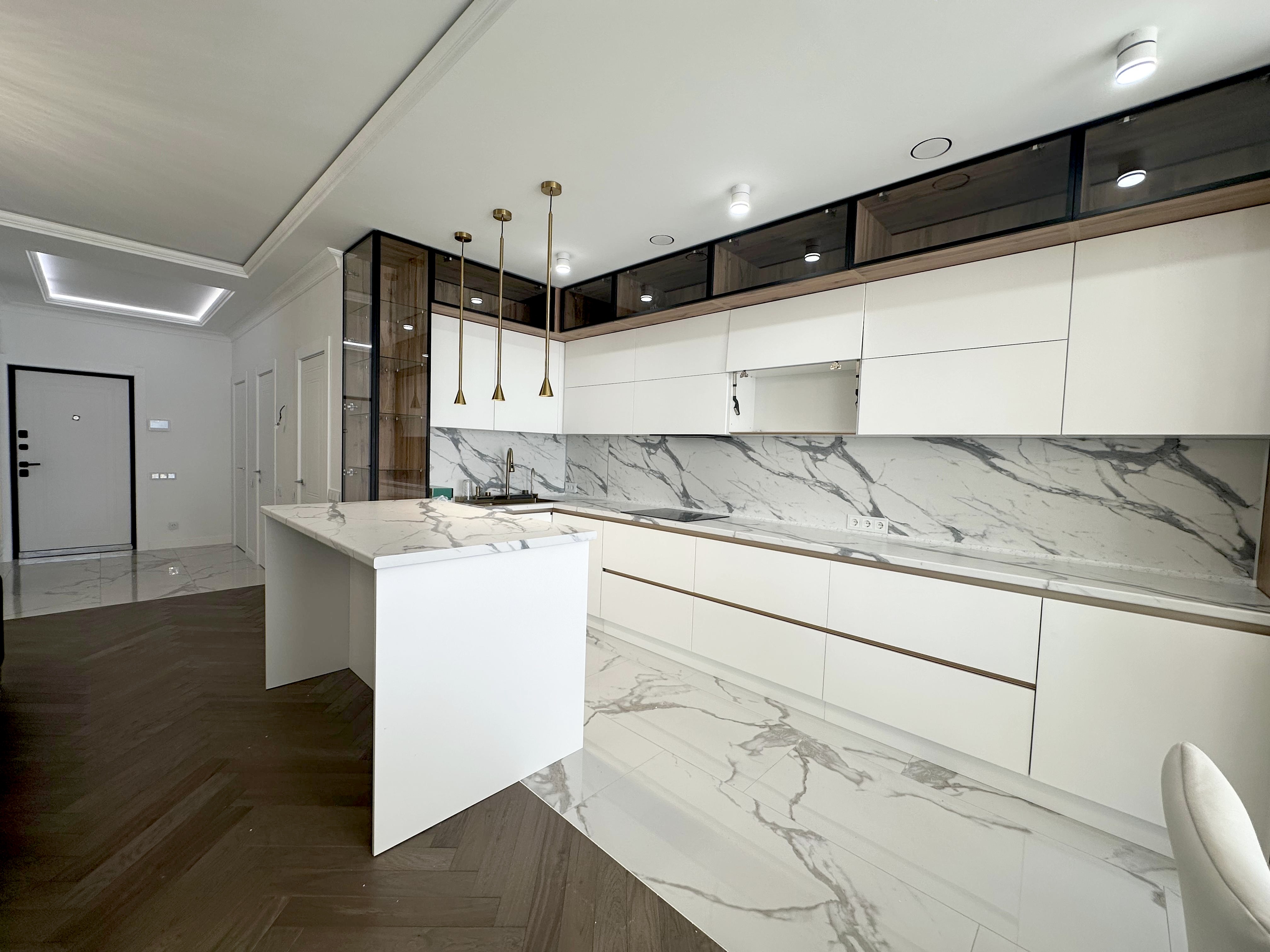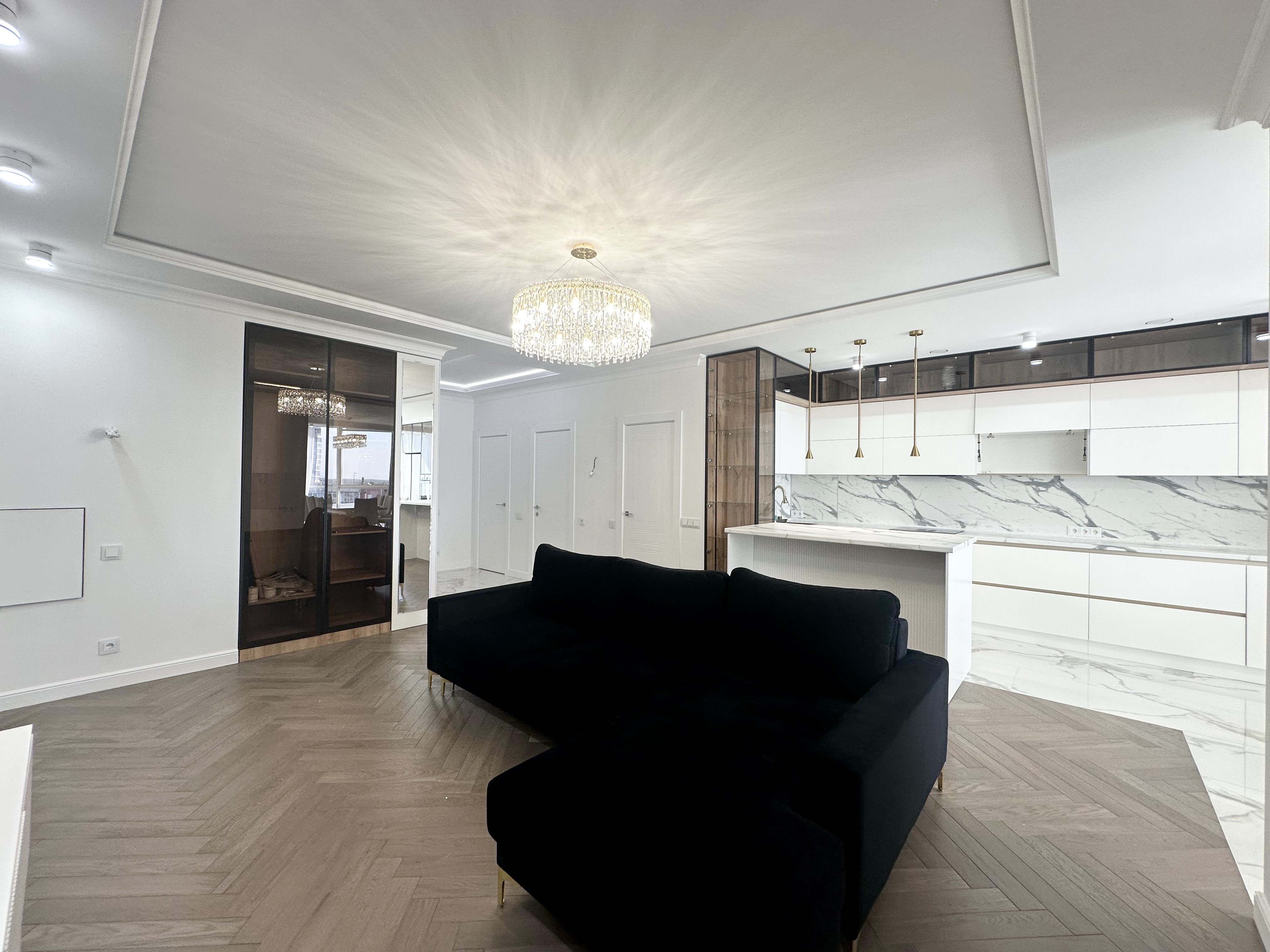 Закрытая территория комплекса. Подземный паркинг с возможностью спуска на лифте. Квартира расположена на 17 этаже. Планировка: общ. S=135 кв. м, 3 изолированные комнаты и кухня-гостиная, с/у, просторная витражная лоджия, гардеробная комната. Высота потолков 2,80 м. Состояние квартиры - в квартире выполнен дорогой, качественный ремонт. Никто не жил.