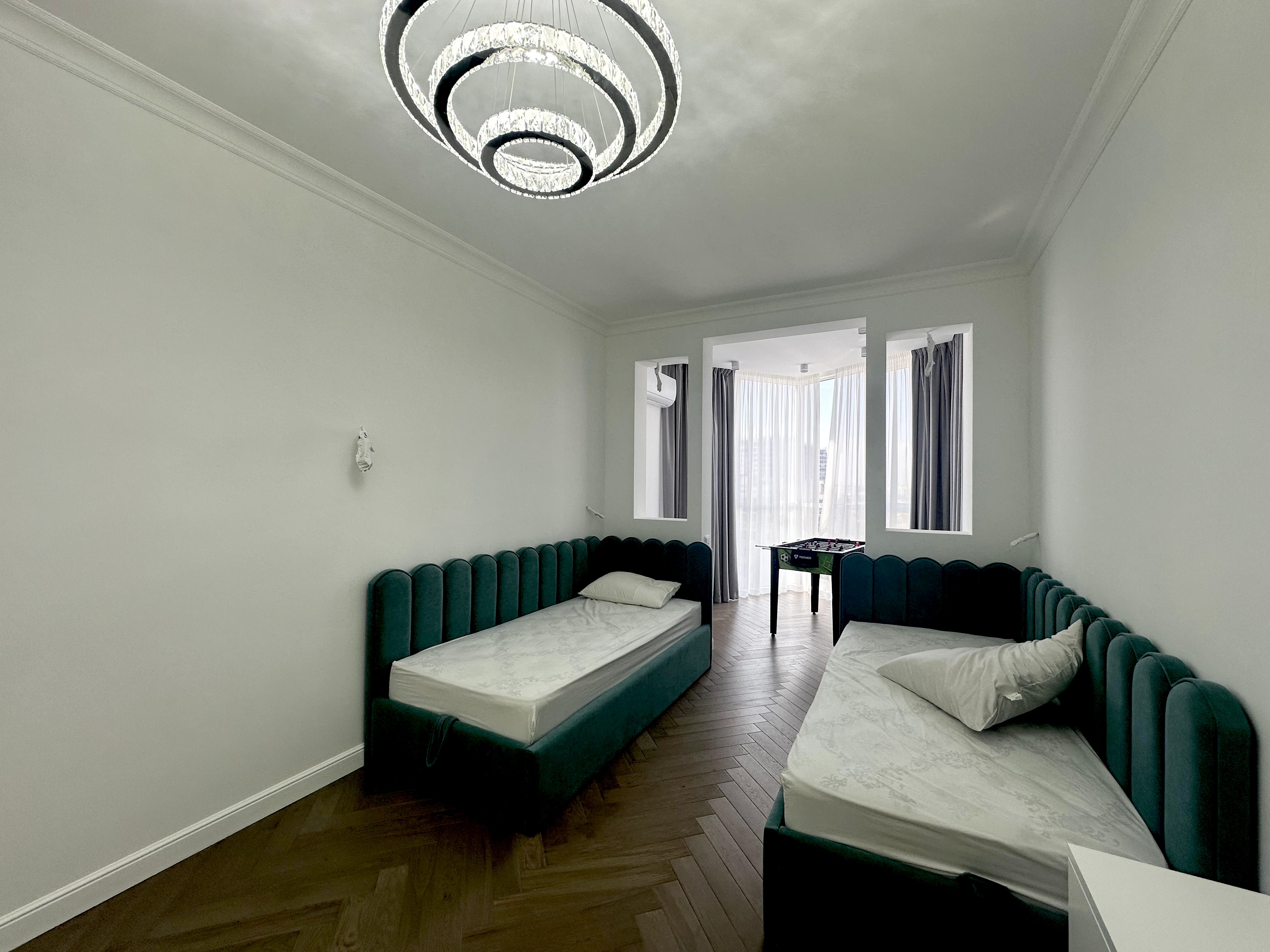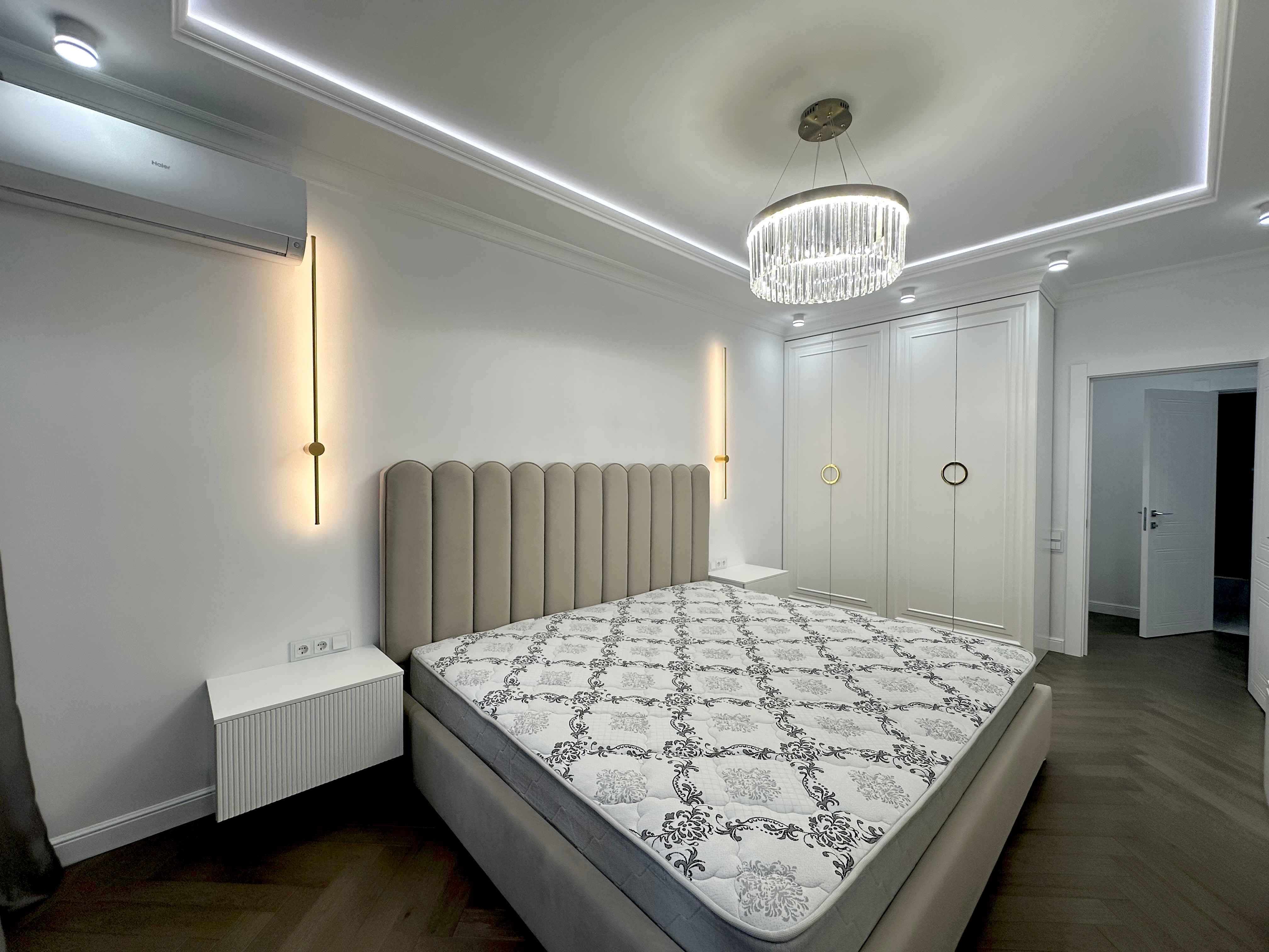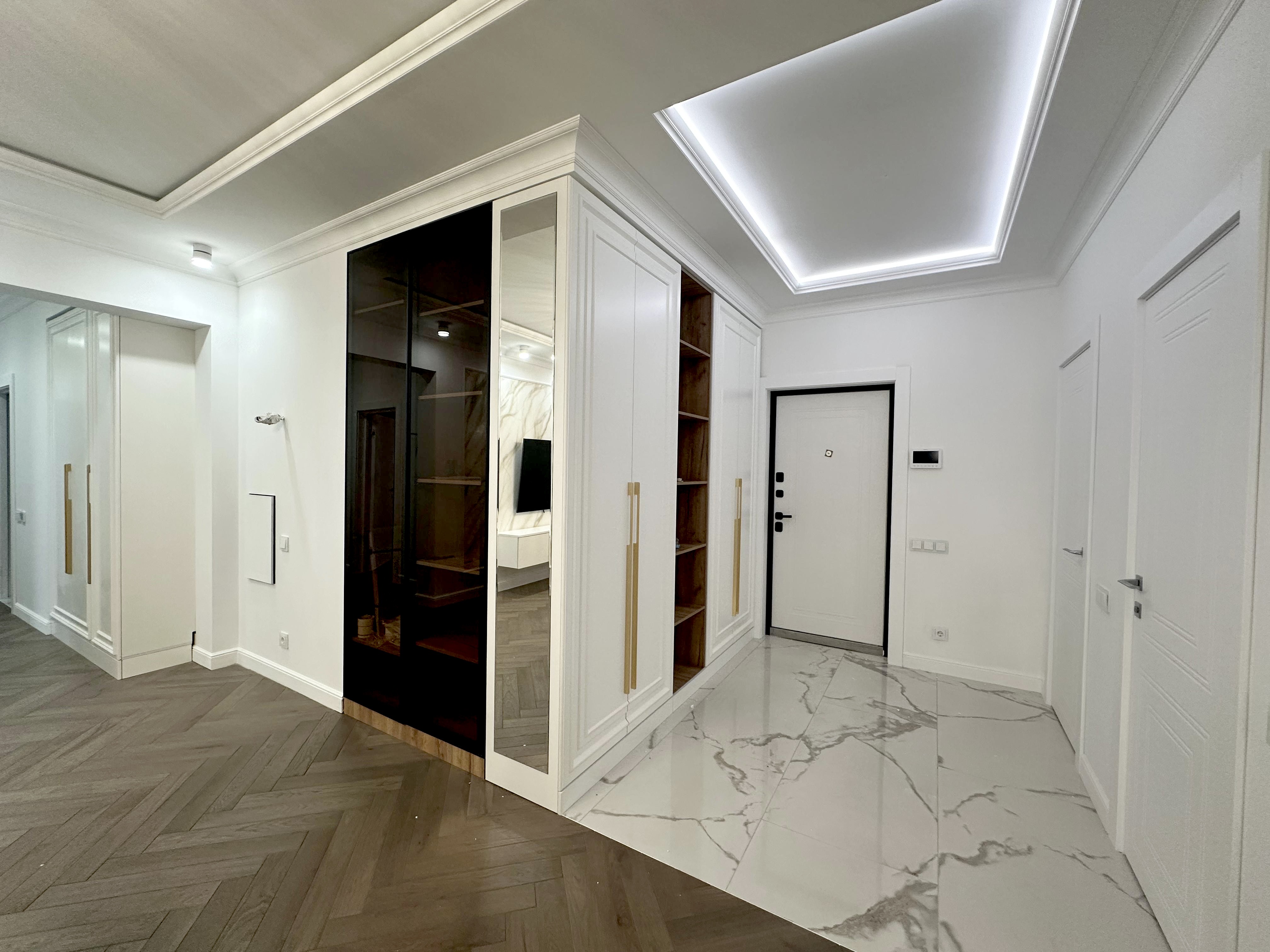 Закрытая территория комплекса. Подземный паркинг с возможностью спуска на лифте. Квартира расположена на 17 этаже. Планировка: общ. S=135 кв. м, 3 изолированные комнаты и кухня-гостиная, с/у, просторная витражная лоджия, гардеробная комната. Высота потолков 2,80 м. Состояние квартиры - в квартире выполнен дорогой, качественный ремонт. Никто не жил.