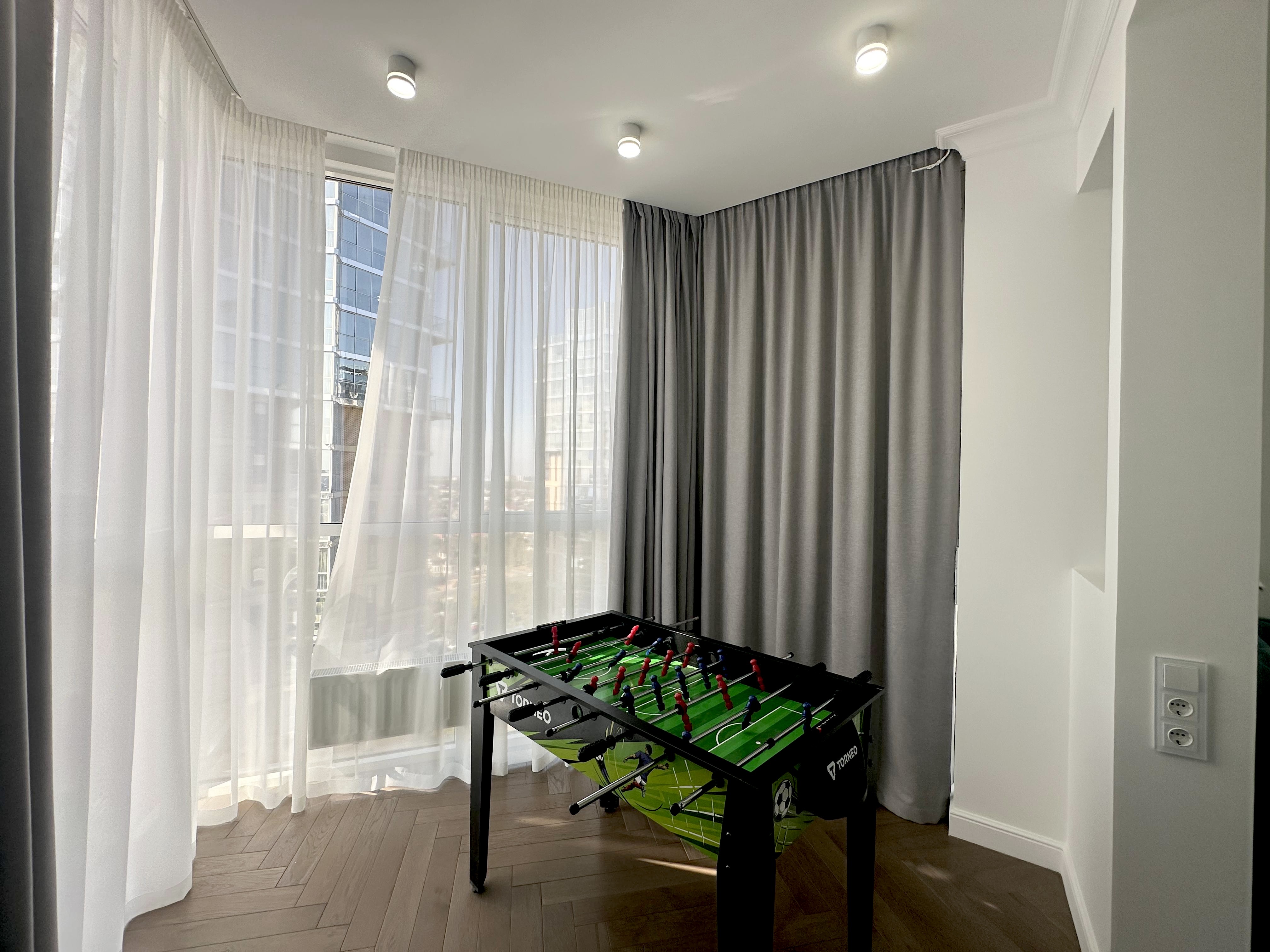 Развитая инфраструктура: кафе, рестораны, фитнес клубы, торговые центры, лучшие клиники в городе, супермаркеты, магазины, аптеки, прогулочные зоны, двор, оборудованный детскими площадками, подземный и наземный паркинг, консьерж и охрана, камеры видео-наблюдения.