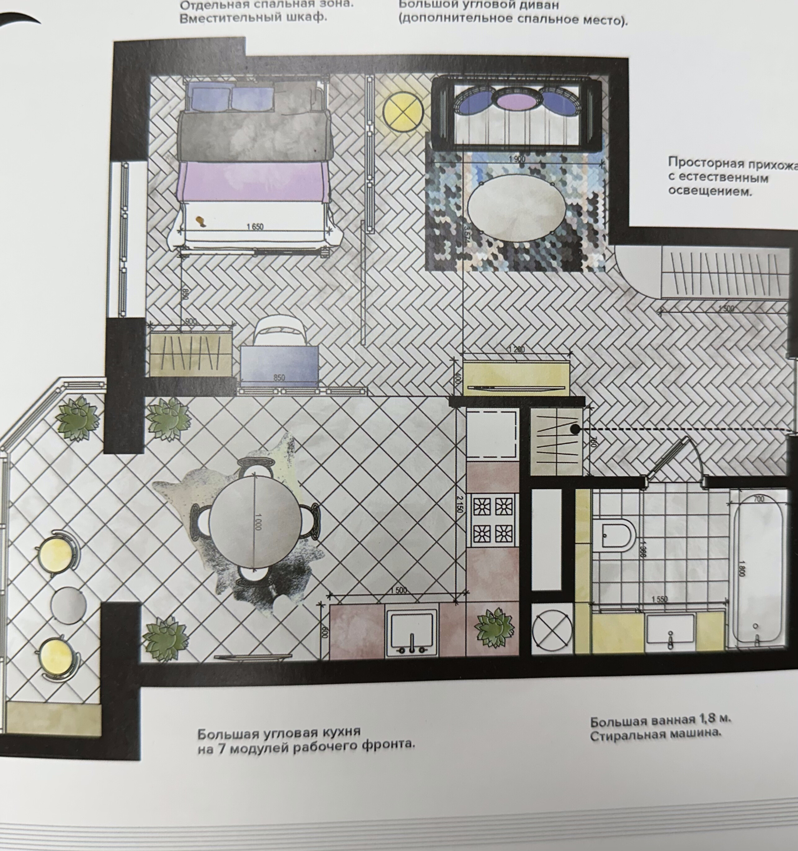Квартира расположена на 22 этаже. Планировка: общ. S= 45 кв. м, 1 изолированная комната и кухня-гостиная, с/у, просторная лоджия. Высота потолков 2,80 м. Состояние квартиры - предчистовая отделка от застройщика.