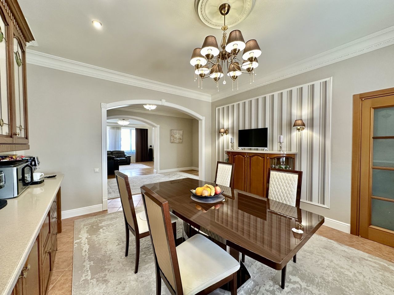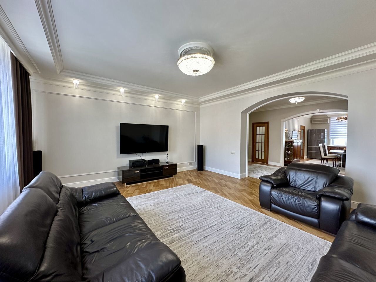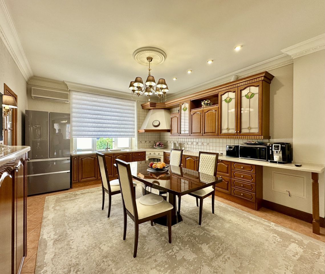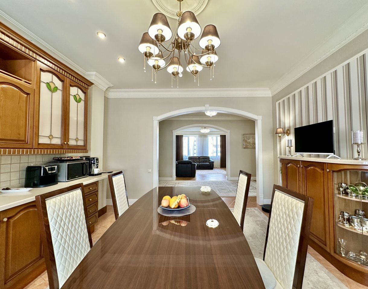 Планировка: общ. S= 157 кв.м, 3 изолированные комнаты и кухня-гостиная, 2 с/у, 2 лоджии. Высота потолков 3 м. Состояние квартиры - отличное, качественный ремонт,мебель и техника остается . ВСЕ ВОПРОСУ ПО ТЕЛЕФОНУ