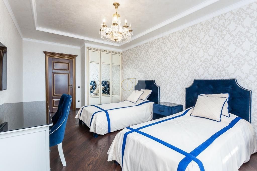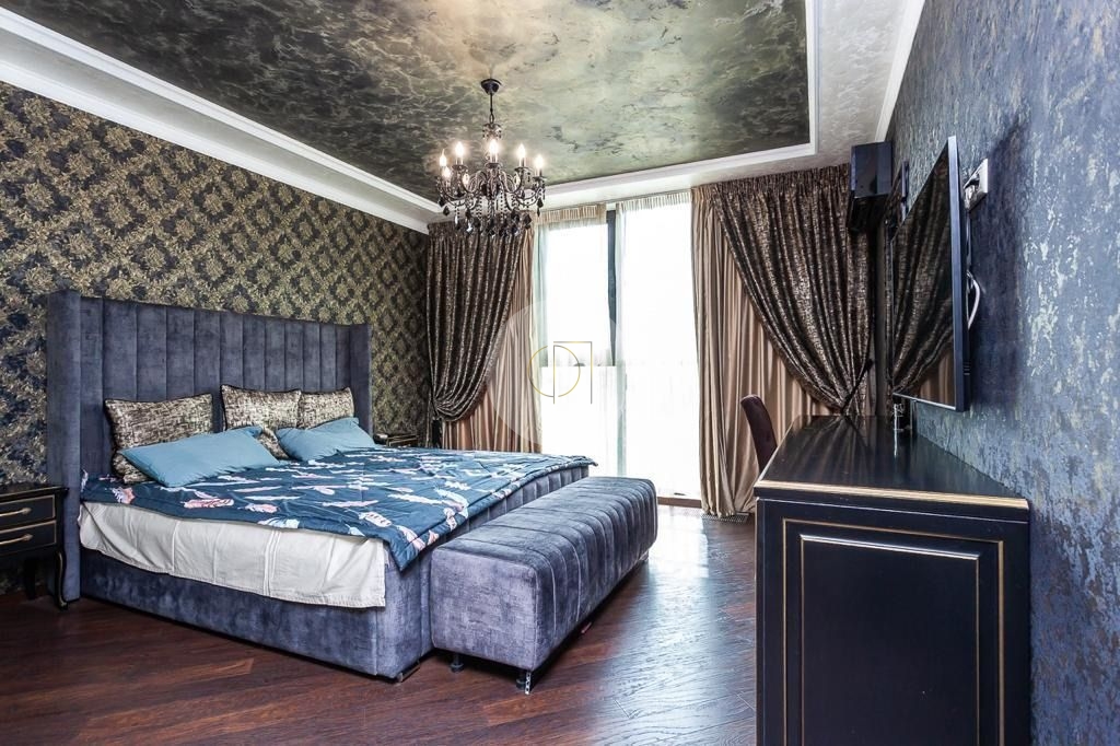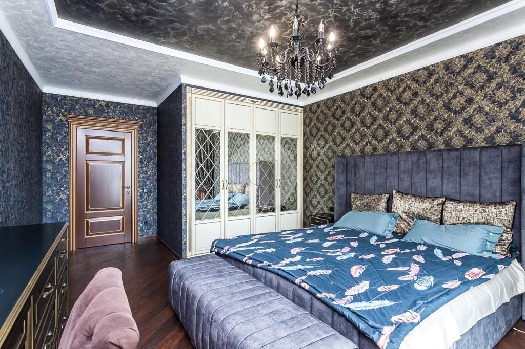 В квартире 2 полноценные с/у, гардеробная, 3 большие спальни, просторная гостиная совмещения с кухней.Сделан дорогой дизайнерский ремонт, с использованием дорогих и качественных материалов.